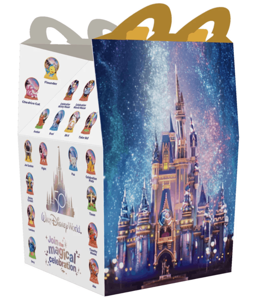 While The Worlds Most Magical Celebration will continue for 18 months these toys are only available for a limited time. McDonalds is releasing 50 unique Happy Meal toys and an exclusive Happy Meal box based on most of the Disney Fab 50 Character Collection as part of Disney Worlds 50th anniversary celebration. 1 customers get their Happy Meals using Mobile Order Pay on the McDonalds.